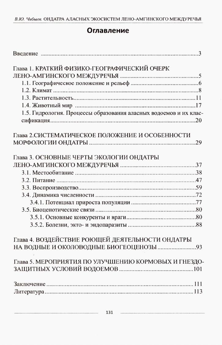 Ондатра аласных экосистем Лено-Амгинского междуречья. Систематика. Экология. Воздействие на аласные биогеоценозы. Биотехния : монография / В. Ю. Чибыев ; [ответственный редактор И. И. Мордосов, профессор, доктор биологических наук] ; Федеральное агентство по образованию, ГОУ ВПО "Якутский государственный университет им. М. К. Аммосова", Зоологический музей. - Якутск : Издательство ЯГУ, 2010. - 131 с.