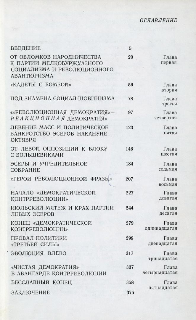 Автор, видный советский историк, показывает сложный, извилистый путь некогда самой многочисленной и влиятельной мелкобуржуазной партии России — социалистов-революционеров. В книге вскрывается глубокий внутренний кризис партии эсеров, несостоятельность теории и практики мелкобуржуазного социализма, превращение эсеровских террористов в союзников Колчака и Деникина, организаторов кронштадтского мятежа и "антоновщины". Проблемы, рассматриваемые в книге, имеют не только историческое значение. Они весьма актуальны, их изучение может быть полезным при оценке позиций современных мелкобуржуазных партий, выработке стратегии и тактики коммунистических партий в борьбе за создание единого фронта трудящихся в странах капитала
