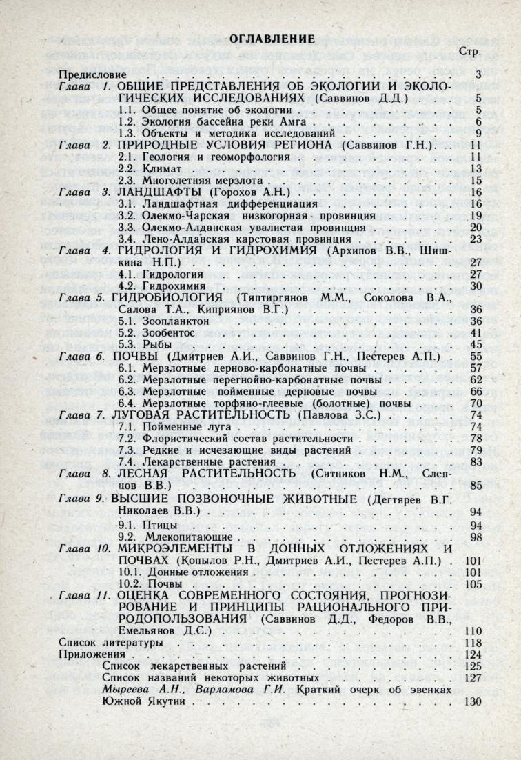 Экология верхней Амги / Д. Д. Саввинов, Г. Н. Саввинов, М. М. Тяптиргянов ; Рос. акад. наук [и др.]. - Якутск : Якут. науч. центр СО РАН, 1992. - 135 с.