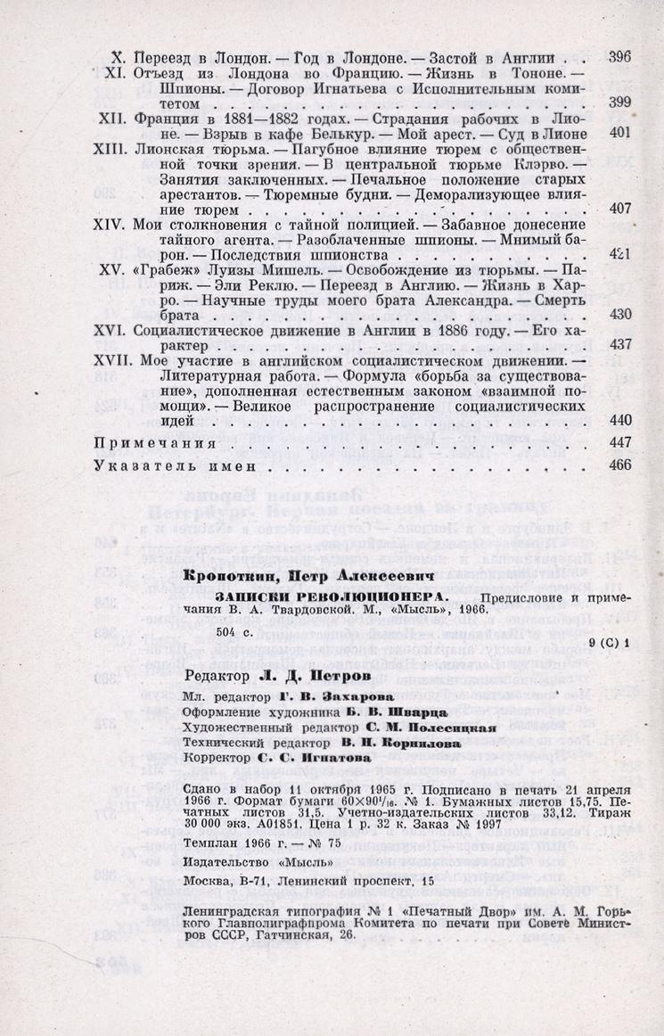 Записки революционера / П. А. Кропоткин. - Москва : Мысль, 1966. - 503, [1] с.