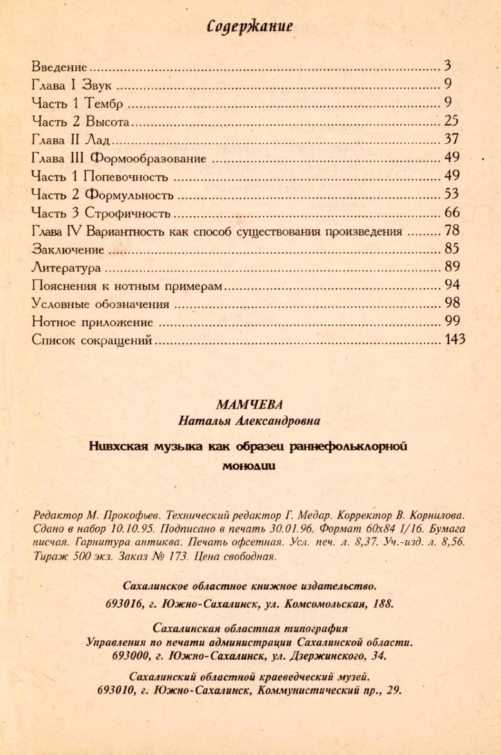 Нивхская музыка как образец раннефольклорной монодии / Наталья Мамчева. - Южно-Сахалинск : Сахалинское областное книжное издательство, 1996. - 142, [1] с.
