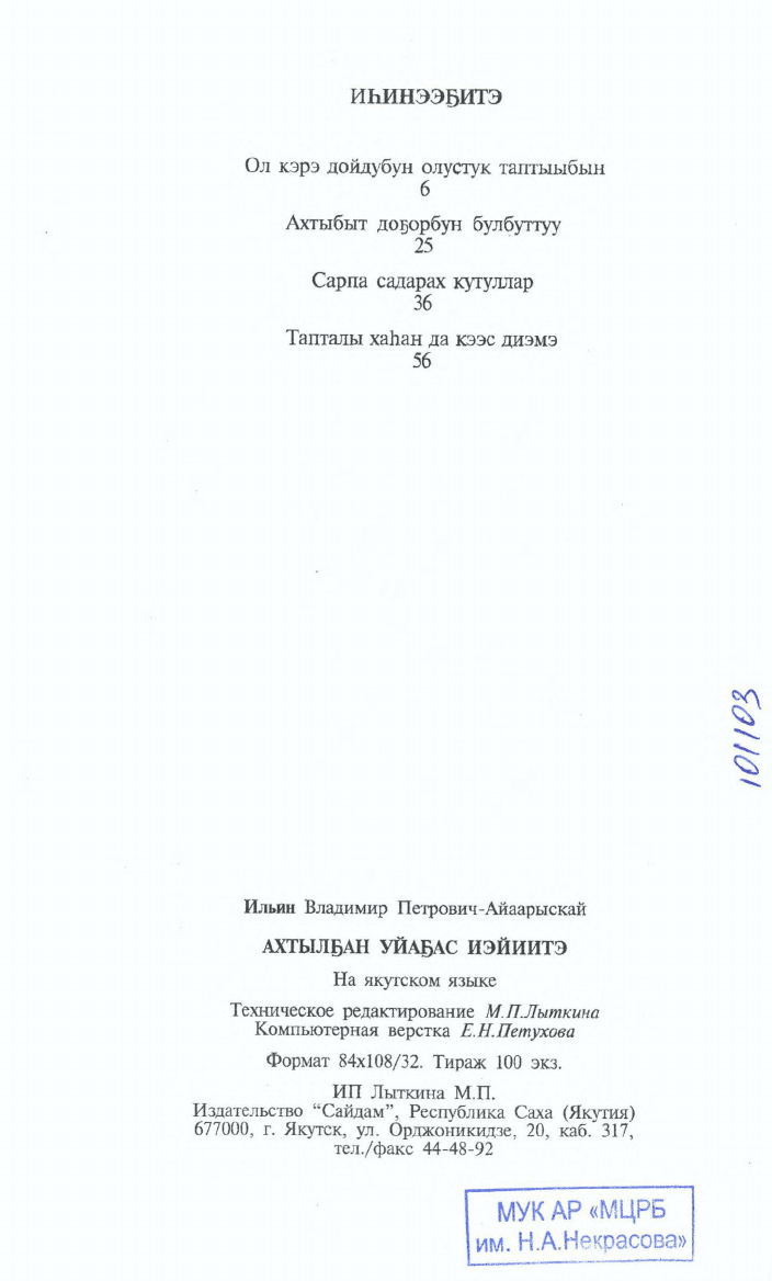- Дьокуускай : Сайдам, 2008. - 70, [2]c.