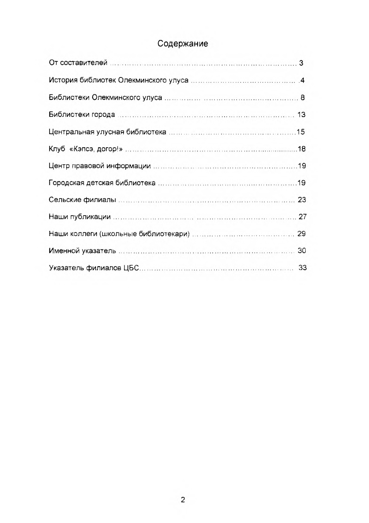 Библиотеки Олекминского улуса: история и современность (1906-2005 гг.) : библиографический указатель / Олекминская ЦБС, Центральная библиотека им Л. Л. Габышева ; [сост. В. В. Ершова ; вступ. ст. С. С. Шараборина ; отв. за вып. Н. С. Худякова]. - Олекминск : [б. и.], 2005. - 34 с.