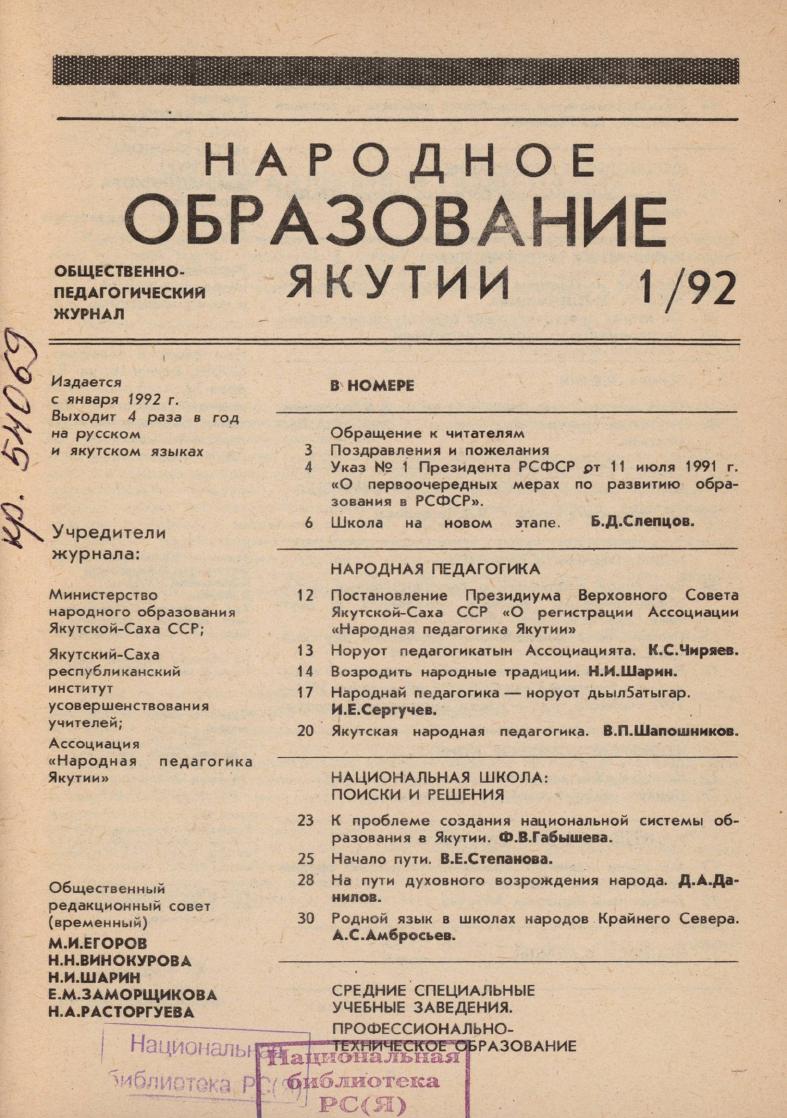 - Периодические издания Якутии (конец XIX – XXI вв.) > Журналы > Народное образование Якутии > 1992,