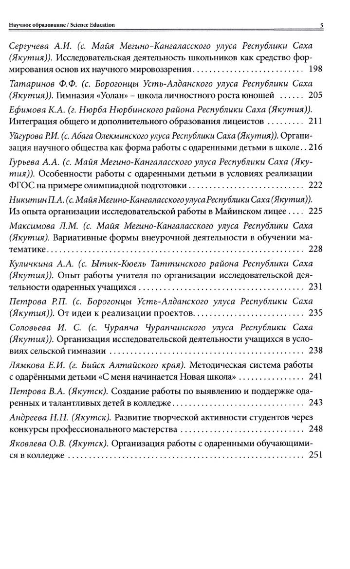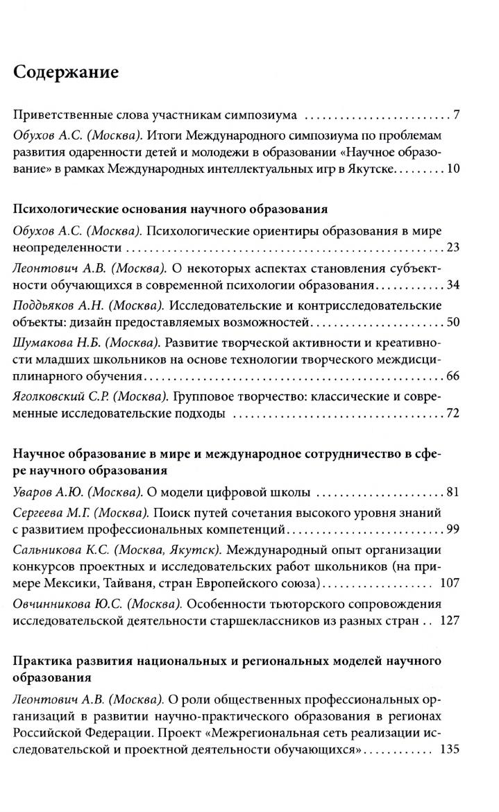 Научное образование = Science Education : сборник статей участников симпозиума по проблемам развития одаренности детей и юношества в образовании / под общей редакцией, [авторы предисловия]: А. С. Обухова, Ю. И. Семенова ; рецензенты: академик А. Л. Семенов, Д. Б. Богоявленская, А. И. Савенков. — Якутск ; Москва : Журнал "Исследователь/Researcher", 2018. — 301 с.