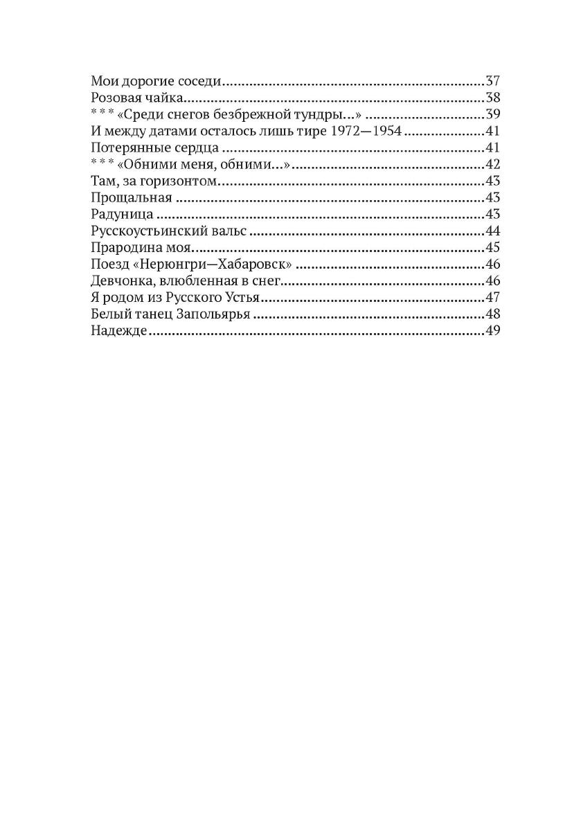 В сборнике отображены воспоминания автора о светлых днях детства, о родителях — тружениках тундры, об их нелегкой судьбе и работе, а также о любви к Северу, родному дому — Русскому Устью, родине — Якутии и ее необъятной тундре. А красной нитью поэтического творчества проходит большое уважение к труженикам Арктики и любовь к природе Дальнего Востока и Севера