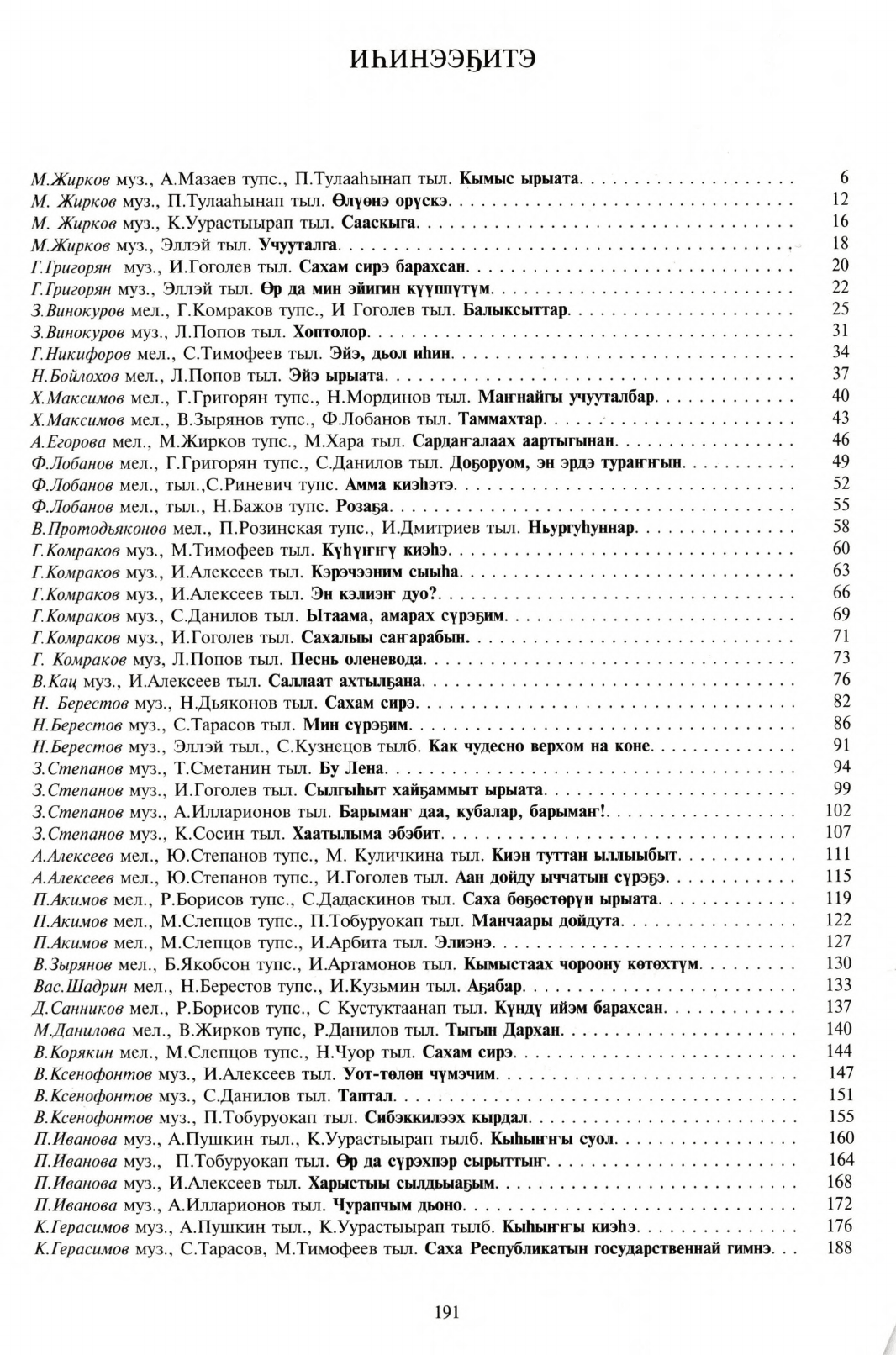 Иван Степанов репертуарыттан саха композитордарын уонна мелодистарын ырыалара [Ноты] / [хомуйан оҥордо, эппиэттиир ред. Т. В. Павлова ; муз. ред. К. А. Герасимов]. - Дьокуускай : Сахаполиграфиздат, 2006. - 191 с.