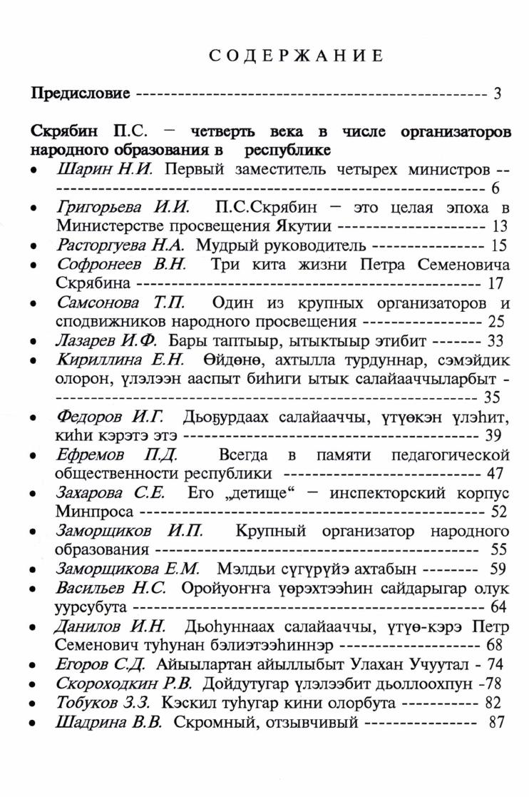 Скрябин Петр Семенович / Министерство образования Республики Саха (Якутия) ; [составители: Г. З. Скрябина, К. Г. Скрябина, С. Е. Горохова ; редсовет: Л. И. Федорова и др. ; автор предисловия Ф. В. Габышева]. - Якутск : Бормоткин С. С., 2007. - 173, [2] с.