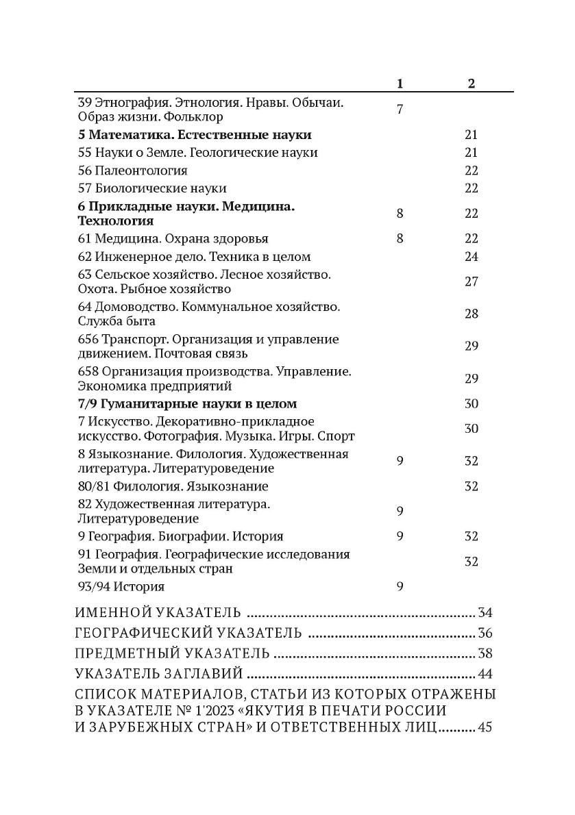 Якутия в печати России и зарубежных стран : государственный библиографический указатель = Саха Өрөспүүбүлүкэтин туһунан Арассыыйа уонна тас дойдулар таһаарыылара : судаарыстыбаннай библиографическай ыйынньык / Министерство культуры и духовного развития Республики Саха (Якутия), Национальная библиотека Республики Саха (Якутия), Центр обеспечения информационными ресурсами. - Якутск : СРИД НБ РС(Я), 2019- . 2023, N 1 (1-127). - 2023. - 1 файл (47, [1] с. ; 1 Мб).