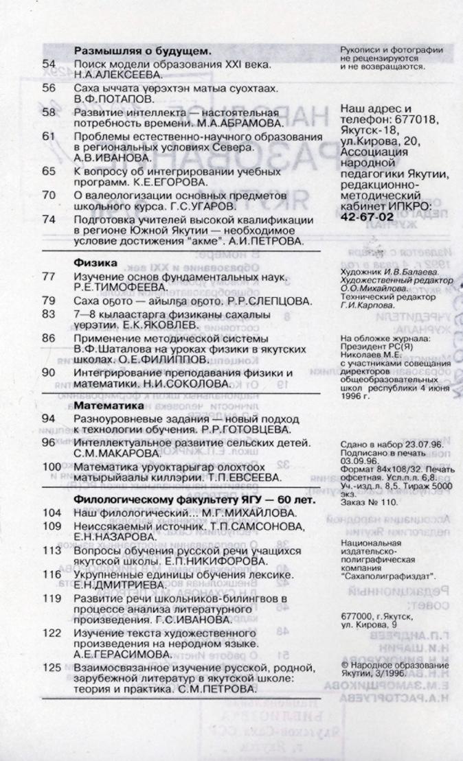 - Периодические издания Якутии (конец XIX – XXI вв.) > Журналы > Народное образование Якутии > 1996,
