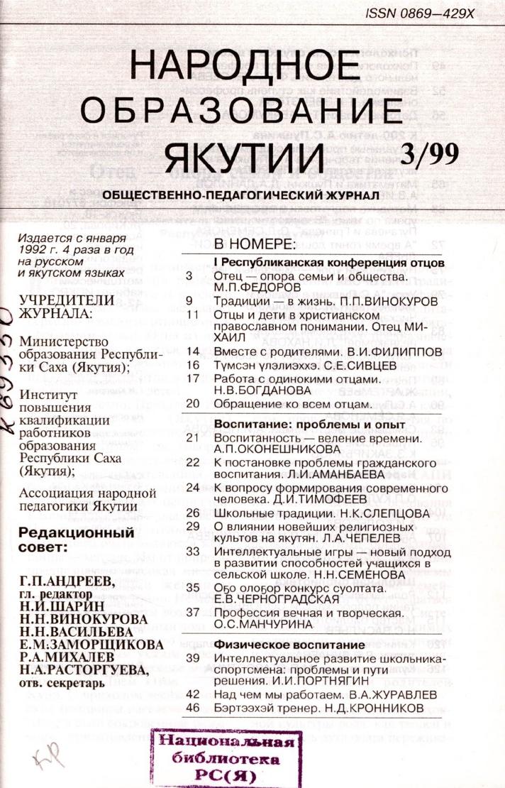 Народное образование Якутии : общественно-педагогический журнал / . - Якутск : Сахаполиграфиздат, 1992