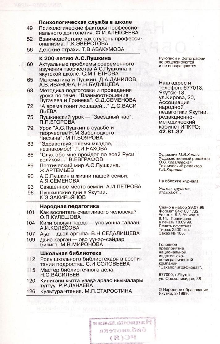 - Периодические издания Якутии (конец XIX – XXI вв.) > Журналы > Народное образование Якутии > 1999,