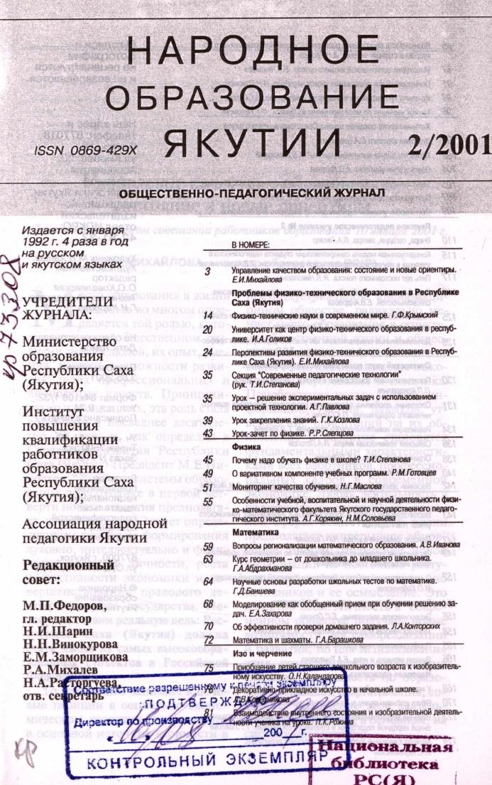 - ШКОЛА > Периодика > Учебно - методическая > Народное образование Якутии,
