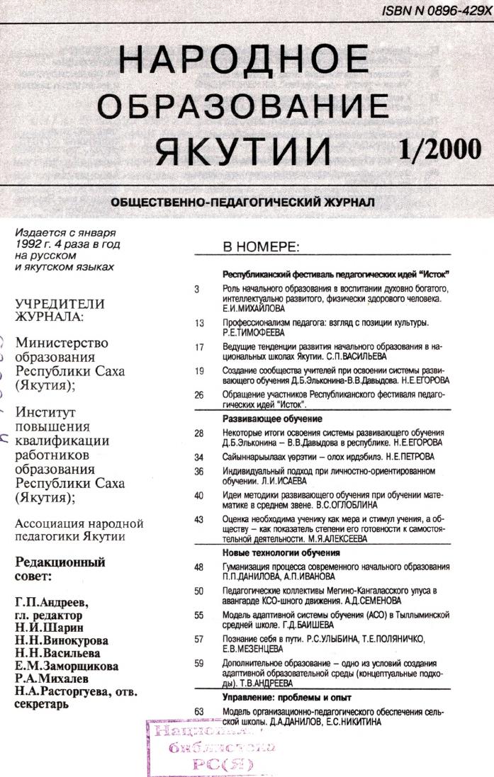 - ШКОЛА > Периодика > Учебно - методическая > Народное образование Якутии,