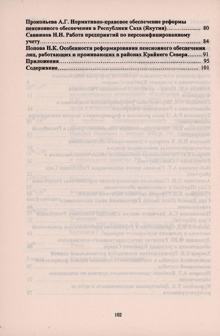 Актуальные проблемы реформы пенсионного обеспечения в условиях Крайнего Севера : [материалы научно-практической конференции, Якутск, 7-9 июля 2000 г.] / редколлегия: Е. Г. Егоров и др. - Якутск : ЯФ "Издательство СО РАН", 2000. - 102 с.