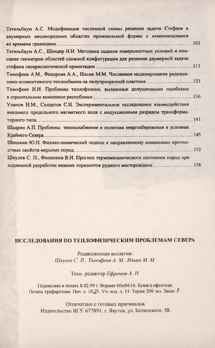 Исследования по теплофизическим проблемам Севера : сборник статей / Министерство общего и профильного образования РФ, Государственный комитет по высшей школе, науке и технической политике РС(Я), Якутский государственный университет им. М. К. Аммосова. - Якутск : Издательство ЯГУ, 1999. - 163 с. : портр., табл. ).