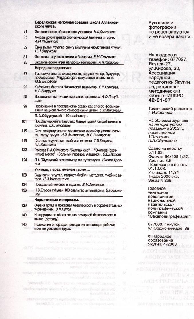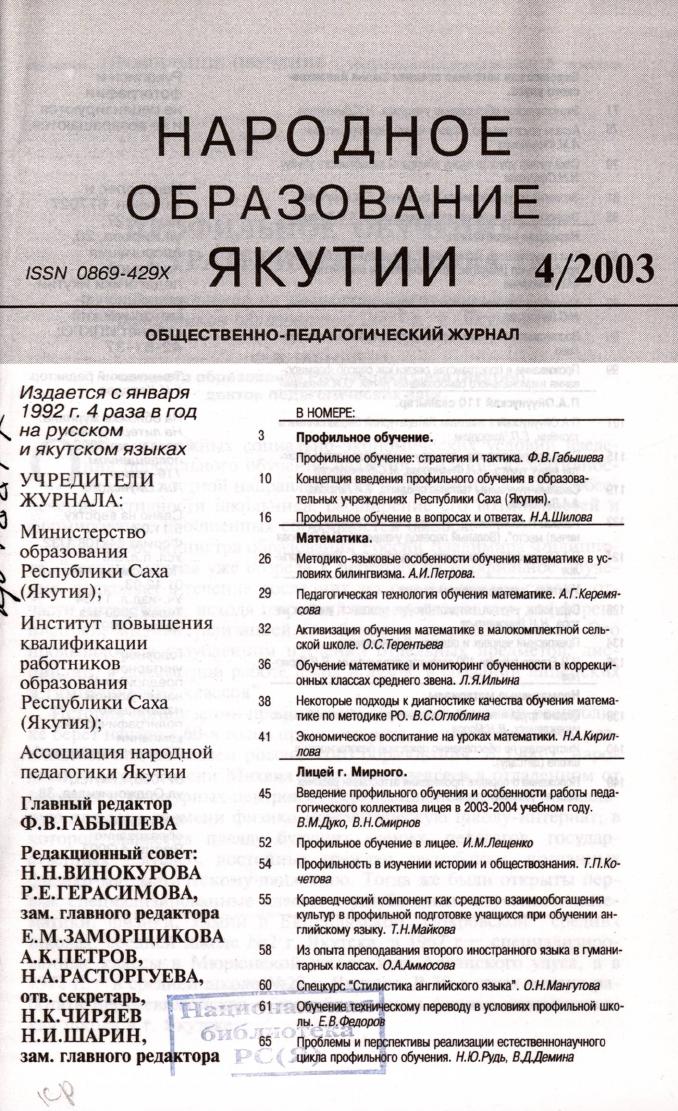 - Периодические издания Якутии (конец XIX – XXI вв.) > Журналы > Народное образование Якутии > 2003,