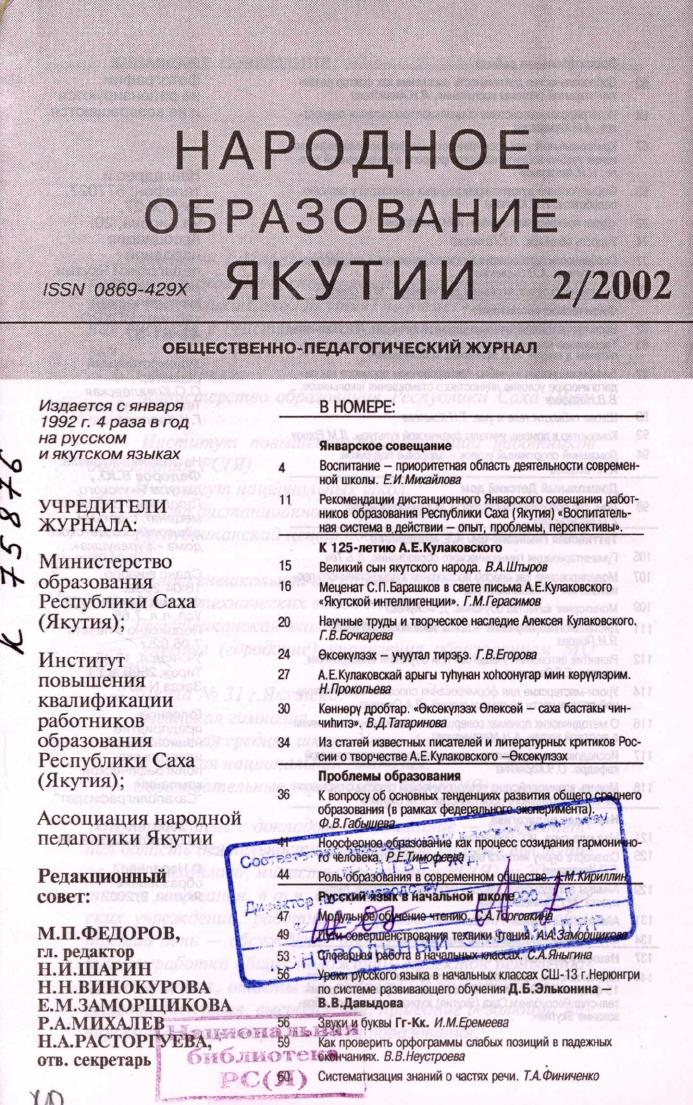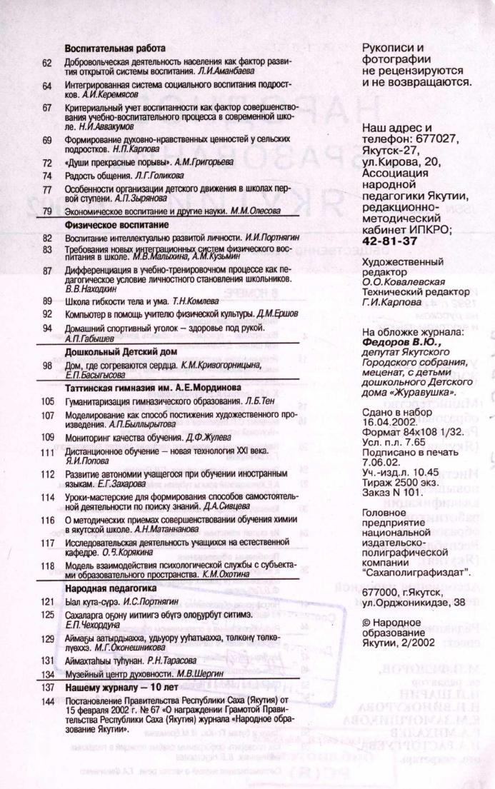 - Периодические издания Якутии (конец XIX – XXI вв.) > Журналы > Народное образование Якутии > 2002,