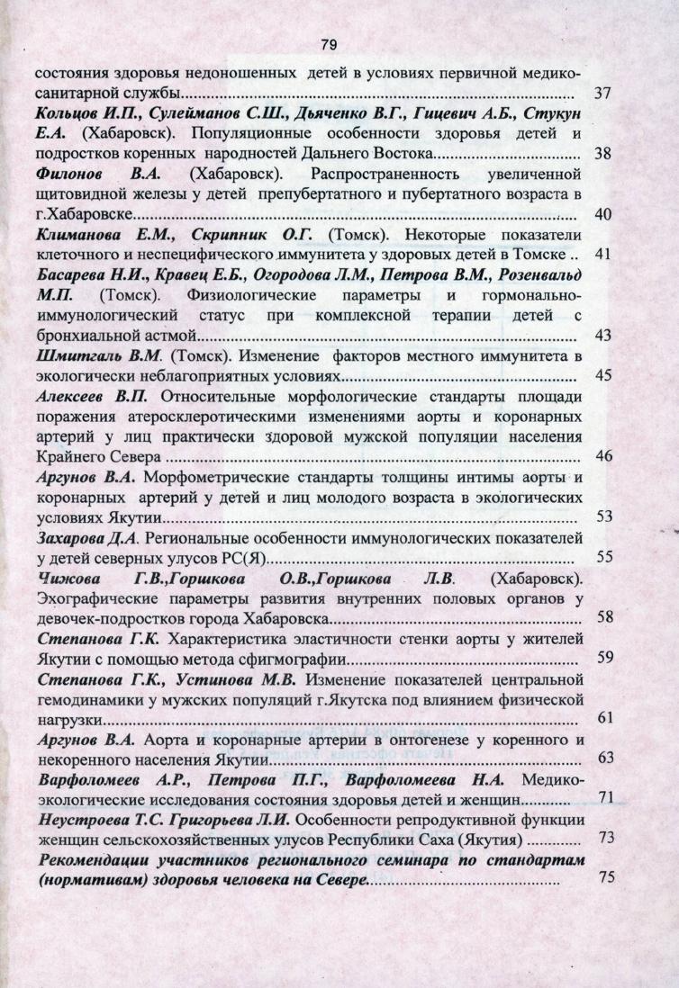 Сборник материалов регионального семинара "Стандарты (нормативы) здоровья человека на Севере" : (г. Якутск, 18-19 нояб. 1997 г.) / редколлегия: В. Г. Кривошапкин (ответственный редактор) [и др.]. - Якутск : Полиграфист, 1997. - 79 с.