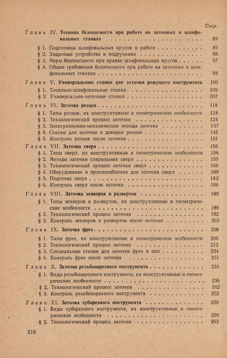 В книге изложены основы процесса абразивно-алмазной обработки при за точке и доводке режущего инструмента, рассмотрены геометрические и конструктивные особенности инструмента, методы и технология заточки его, описаны устройство, настройка и эксплуатация универсальных и специальных заточных станков и приспособлений. В книге также приведены необходимые сведения о технике безопасности, техническом нормировании и организации труда при работе на заточных станках.
