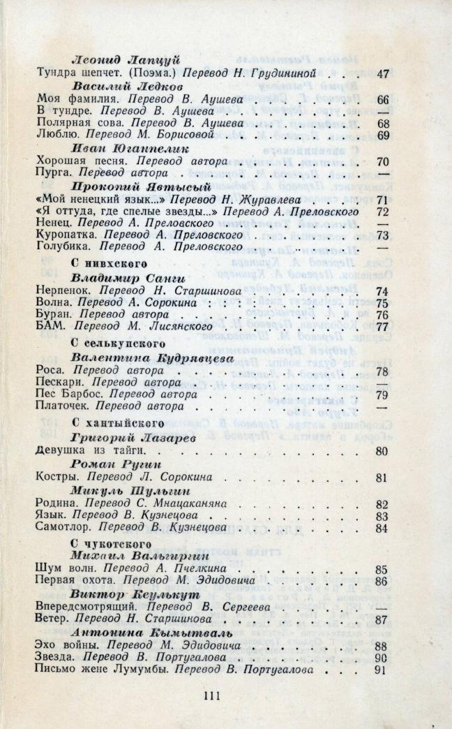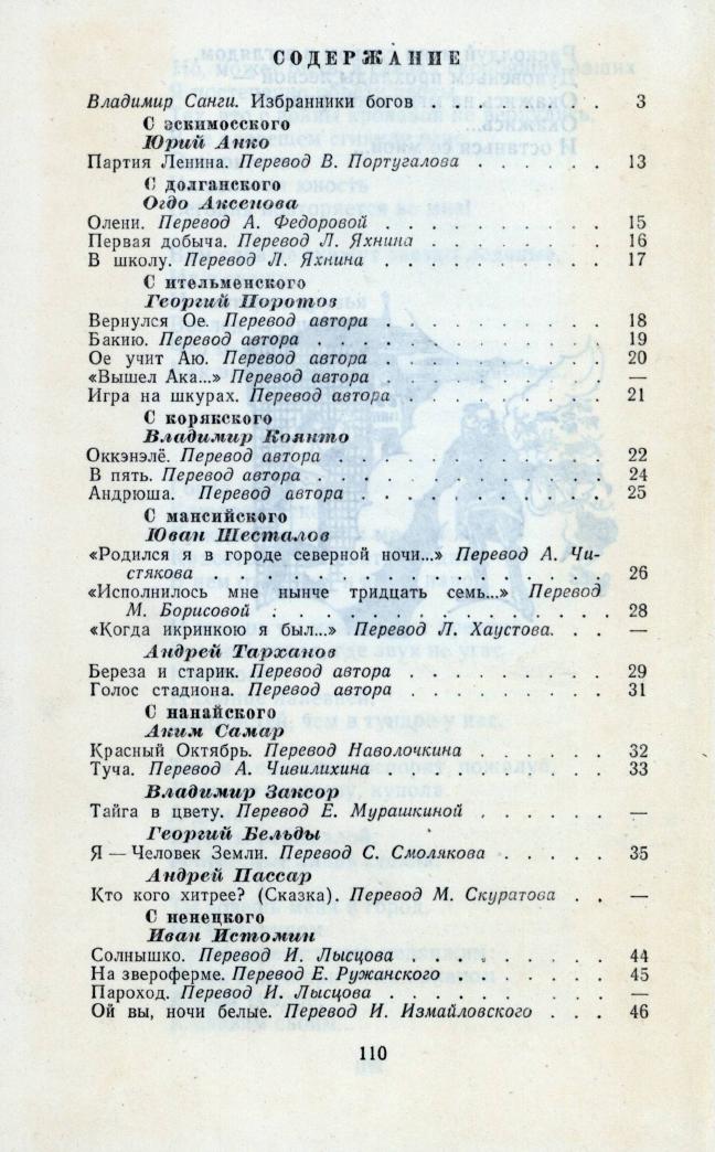 Сборник включает стихи советских поэтов народов Крайнего Севера и Дальнего Востока. Составитель сборника и автор предисловия - первый нивхский писатель В. М. Санги.