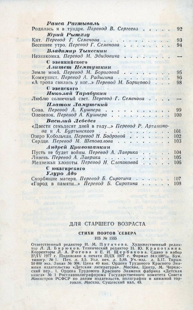 Стихи поэтов Севера : [Сборник] / сост. и предисл. В.М. Санги ; худож. Н. Челинцова]. - Москва : Детская литература, 1977. - 112 с.