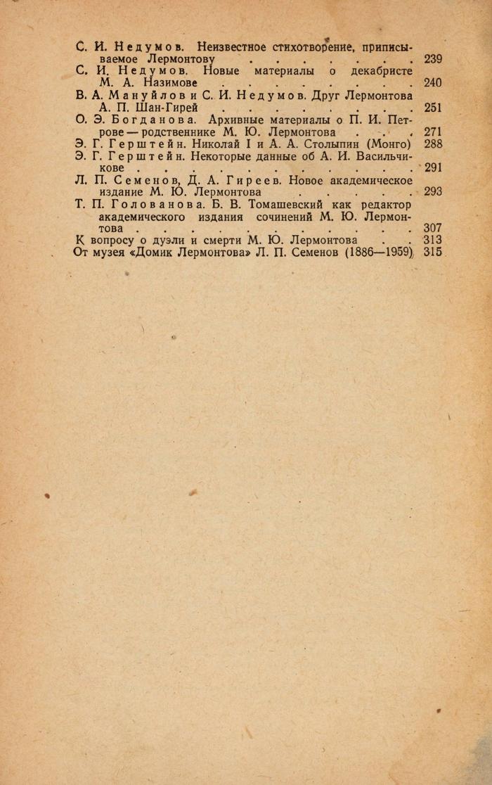 Михаил Юрьевич Лермонтов : сборник статей и материалов / редакторы: Д. А. Гиреев, А. М. Докусов (ответственный редактор), В. А. Мануйлов [и др.]. - Ставрополь : Ставропольское книжное издательство, 1960. - 315, [3] c., [1] л. портр.