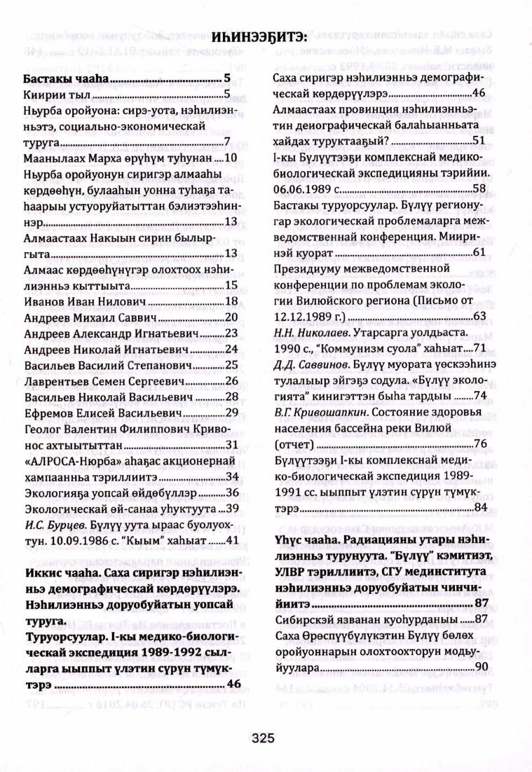 В книгу вошли исследования заслуженного врача РСФСР и РС (Я) Николаева Н. Н. о состоянии здоровья населения, проживающего в бассейне реки Марха, об экологическом состоянии Нюрбинского района Якутии