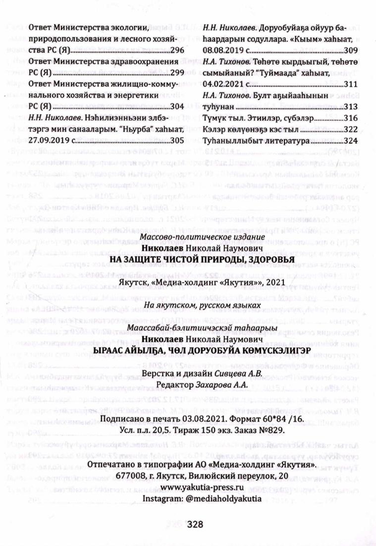 Ыраас айылҕа, чөл доруобуйа көмүскэлигэр / Н. Н. Николаев ; [автор предисловия В. М. Прокопьев]. - Дьокуускай : "Якутия" медиа-холдинг, 2021. - 328 с., [8] л. цв. ил., портр.