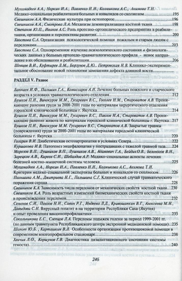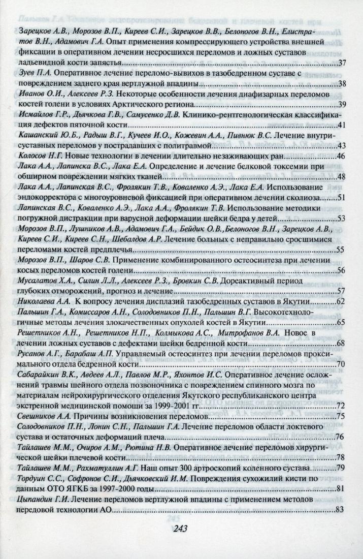 Актуальные проблемы экстренной медицинской помощи : тезисы докладов. - Якутск : Издательство ЯГУ, 2000-. - Т. 3: Новые технологии в травматологии и ортопедии : сборник статей по материалам Российской научно-практической конференции, посвященной 50-летию травматологической службы Республики Саха (Якутия), 28-30 июня 2002 г. / [автор-составитель, ответственный редактор Г. А. Палышин ; редакционный совет: Р. З. Алексеев, В. Г. Игнатьев, М. И. Томский ; отвественный секретарь К. Н. Потапова ; рецензент П. Н. Солодовников]. - Якутск : Сахаполиграфиздат, 2002 (НИПК Сахаполиграфиздат). - 246 с. : ил. - ISBN 5-85259-668-X. - 300 экз.