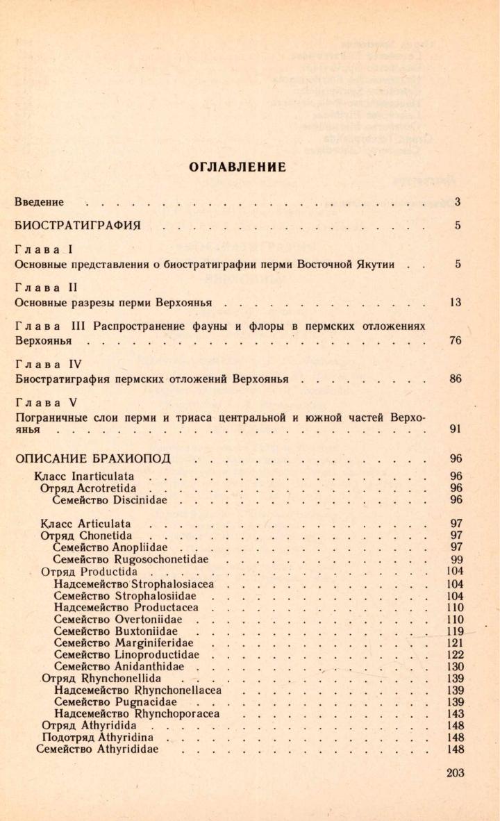 В работе представлены различные взгляды авторов на биостратиграфическое расчленение перми Верхоянья; описаны главные опорные разрезы и разобраны особенности распространения в них основных групп ископаемых остатков фауны и флоры. В Верхоянье выделены шесть биостратиграфических горизонтов, сопоставляемых с ярусной шкалой перми СССР. Проведена ревизия и монографическое описание брахиопод, среди которых установлено 156 родов и видов, из них более половины описаны впервые