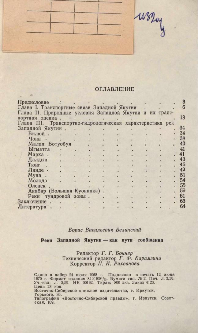 Реки Западной Якутии как пути сообщения / В. В. Белинский ; ответственный редактор К. Г. Кондаков ; Академия наук СССР, Якутский филиал Сибирского отделения, Отдел экономики. - Иркутск : Восточно-Сибирское книжное издательство, 1970. - 65 с.