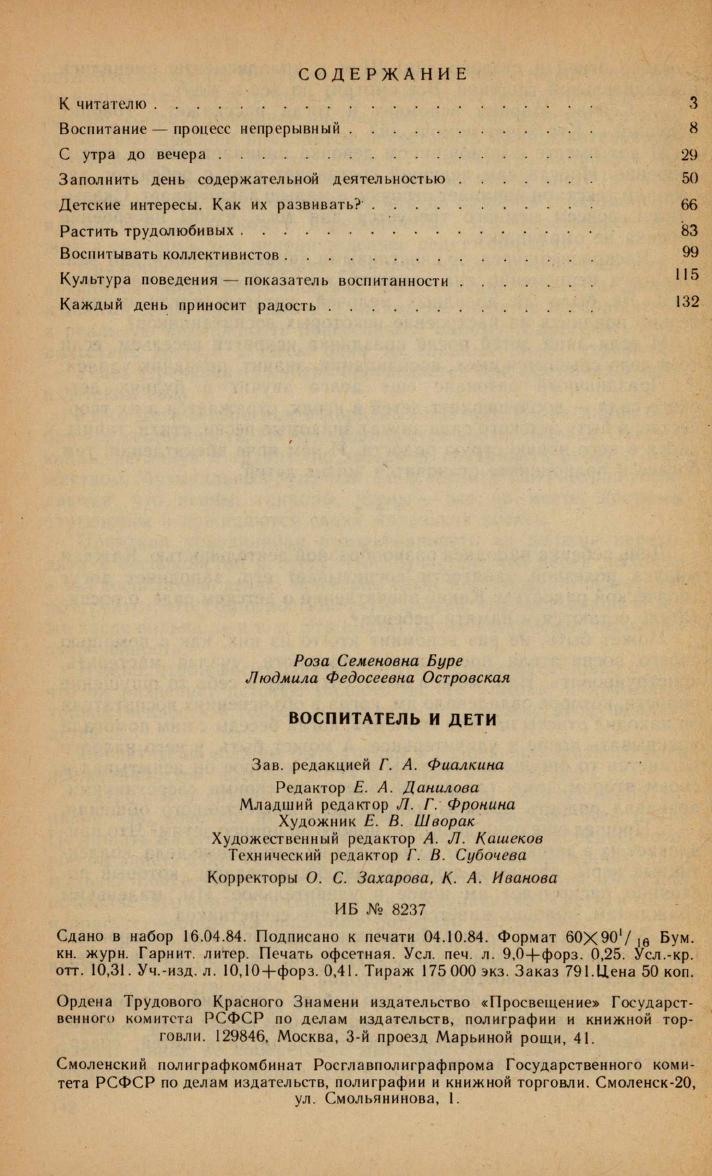 Воспитатель и дети : пособие для воспитателя детского сада / Р. С. Буре, Л. Ф. Островская. - 2-е изд., испр. и доп. - Москва : Просвещение, 1985. - 142, [2] с.