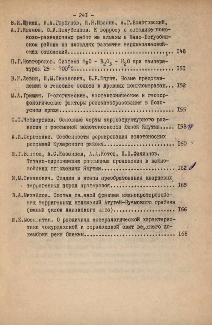 Геология и полезные ископаемые Якутии : тезисы докладов на совместной научной сессии, посвященной 100-летию со дня рождения В. И. Ленина ( апрель 1970 г.) / редакционная коллегия: В. Ф. Возин ( ответственный редактор) [и др.] ; Инcтитут гелогии Якутского филиала Сибирского отделения АН СССР, Якутское территориальное геологическое управление . - Якутск : [б. и.], 1970. - 244 с. ; 20 см.