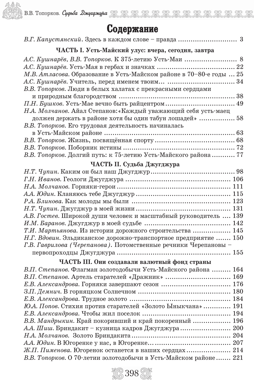 В книге собраны материалы об истории Усть-Майского района, о судьбе золотоносного Джугджура и о вкладе жителей района в победу в Великой Отечественной войне